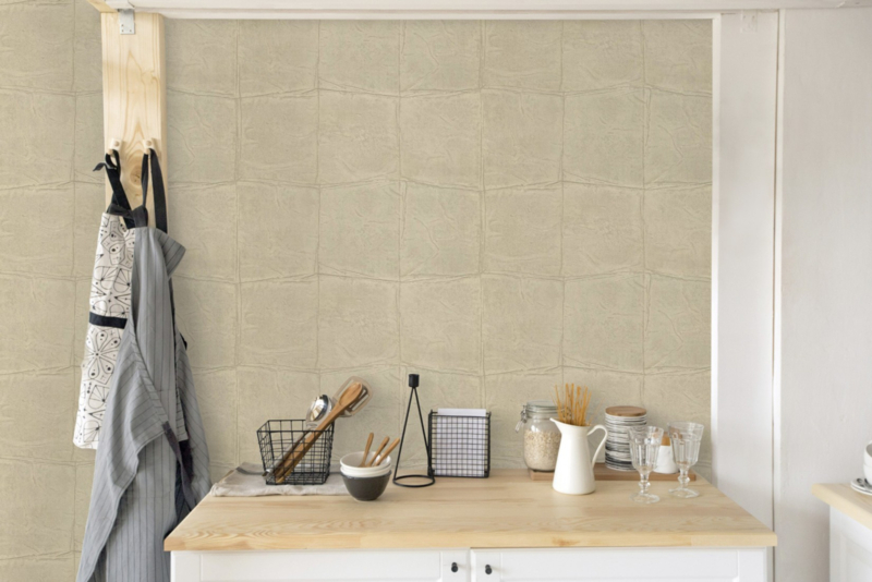 BEHANG MODERN BLOKKEN LEATHERLOOK