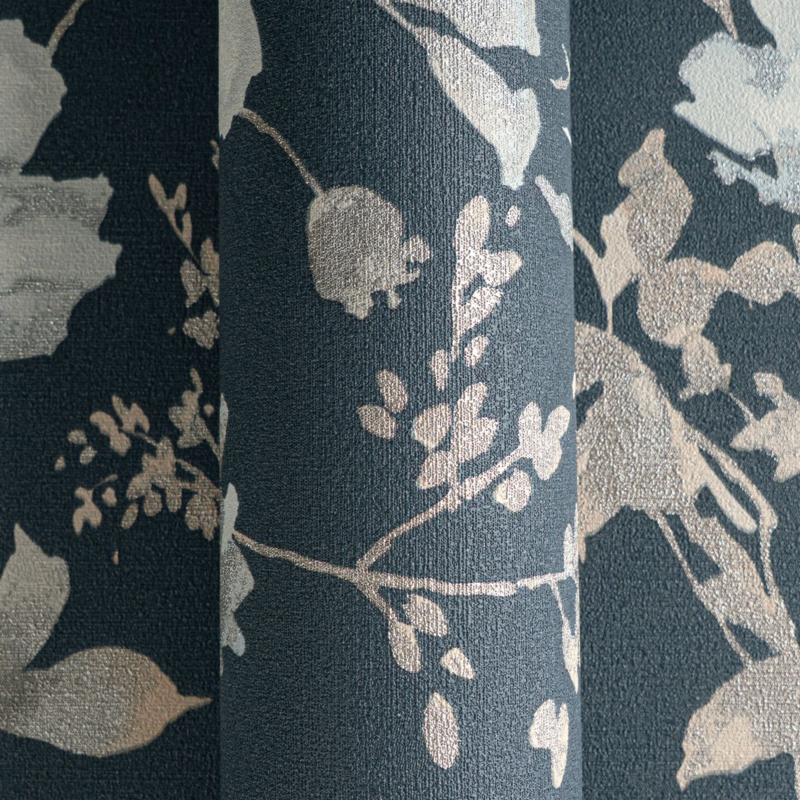 COSMOLiving - Vliesbehang met lichte glans en speels bloemenmotief – Blauw, Metallic, Wit