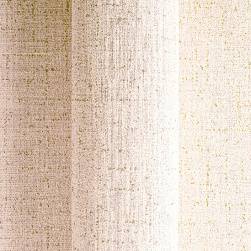 Dit behang heeft een fijne, subtiele textuur op een lichte, beige achtergrond. Delicate, licht glinsterende lijnen in een warme goudbeige tint lopen speels over het oppervlak, als verfijnd borduurwerk of fijne draden. Het patroon doet denken aan geweven stof of linnen en creëert een zachte, gezellige sfeer.