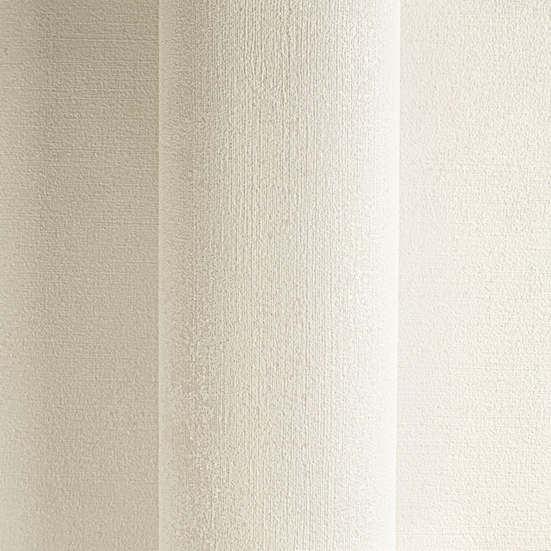 Dit behangpapier heeft een zeer subtiele, ingetogen linnenstructuur in een warme, gebroken witte tint met zachte zand- en crèmekleurige ondertonen. Het patroon is geïnspireerd op fijn geweven stof en gelijkmatig over het oppervlak verdeeld, wat zorgt voor een zacht en natuurlijk textielachtig karakter.