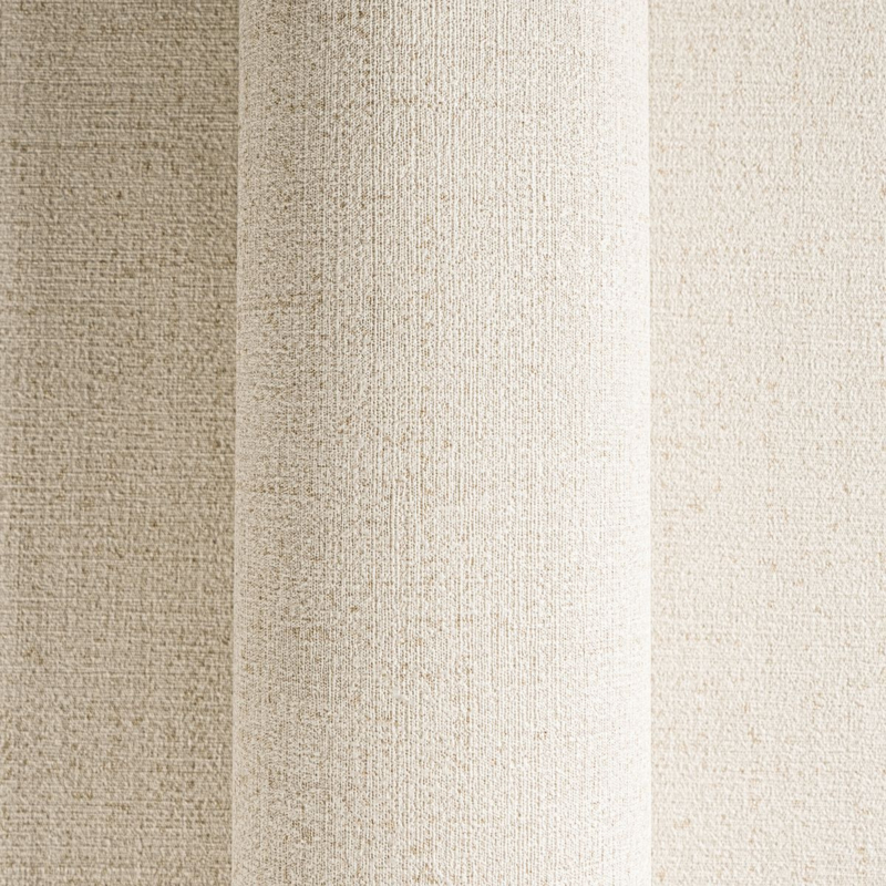 De kleur schakelt subtiel tussen lichtbeige en ivoor, waardoor het behang een neutrale en uitnodigende uitstraling heeft. Hierdoor vormt het een ideale, rustige basis voor uiteenlopende woon- en werkruimtes. Het ingetogen kleurenpalet en de natuurlijke linnenstructuur creëren een harmonieus geheel dat comfort uitstraalt en een gevoel van tijdloze elegantie toevoegt aan het interieur.
