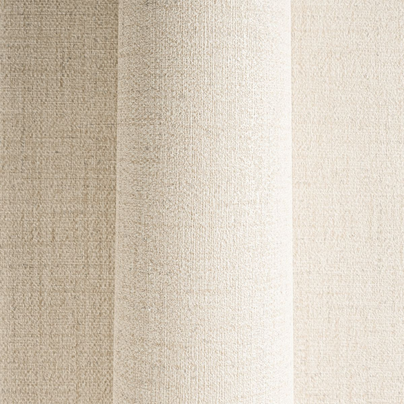 Dit behangpapier heeft een subtiele, rustige linnenstructuur die doet denken aan fijn geweven stof. De basis bestaat uit een zachte, pastelachtige beige tint met een hint van goud, waardoor een kalme en serene uitstraling ontstaat. Over het oppervlak lopen verfijnde, kruislings geplaatste lijnen in warm beige, die het textiele karakter versterken en het geheel extra diepte en een natuurlijk gevoel geven.
