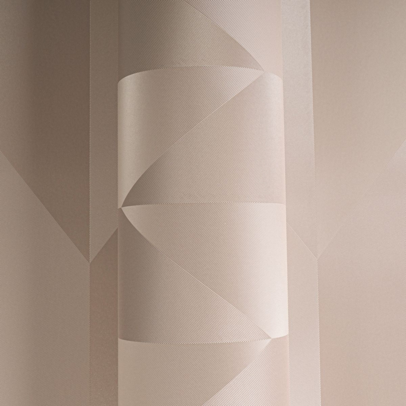 Dit behang heeft een modern geometrisch dessin met verticaal geplaatste ruitvormen die samen een rustig en verfijnd patroon vormen. De vlakken wisselen subtiel af in zachte tinten beige en crème, wat zorgt voor een licht diepte-effect zonder overheersend te zijn. Het warme, poederachtige kleurenpalet geeft het behang een harmonieuze en uitnodigende uitstraling. De strakke vormen en ingetogen kleuren sluiten perfect aan bij een minimalistische woonstijl en doen denken aan Scandinavisch en mid-century modern design. Het patroon voegt elegantie en structuur toe aan de ruimte en creëert een stijlvolle, serene sfeer.