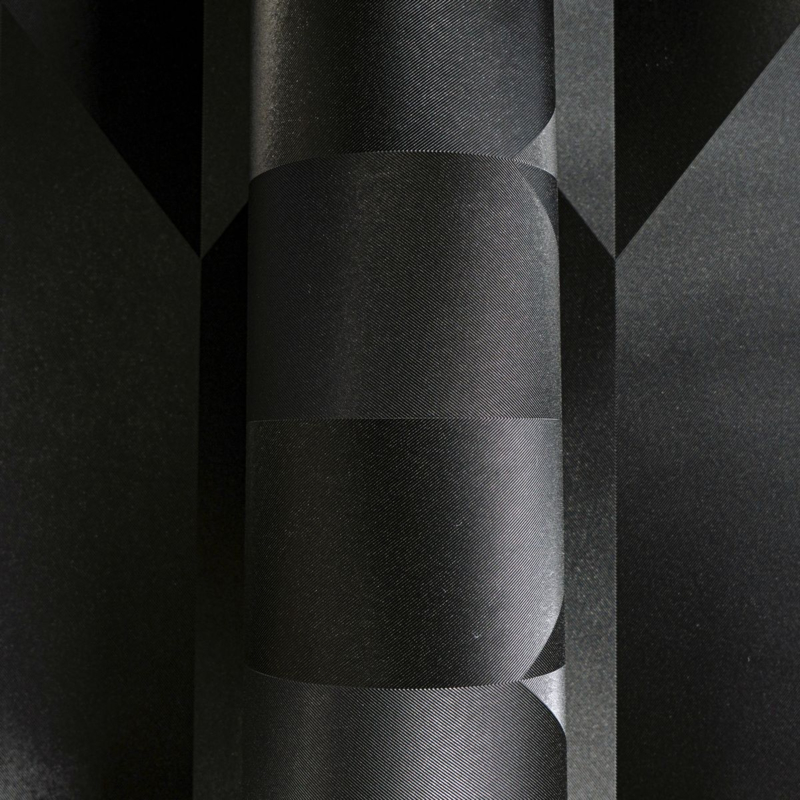 Dit behang heeft een strak geometrisch ontwerp met verticaal herhaalde rhomben en parallellogrammen die samen een grafisch en krachtig patroon vormen. De afzonderlijke segmenten zijn opgebouwd uit verschillende tinten zwart en antraciet, waarbij de wisselende oriëntatie van de vlakken zorgt voor een subtiel driedimensionaal effect. Door het spel van licht en schaduw lijkt het oppervlak bijna gevouwen, wat het ontwerp extra diepte en dynamiek geeft. Het donkere, monochrome kleurenpalet straalt luxe, moderniteit en verfijning uit en geeft de ruimte een uitgesproken, eigentijdse uitstraling. Het geheel oogt minimalistisch en strak, maar tegelijk karaktervol en avant-garde, ideaal voor interieurs die een statement willen maken met een elegante grafische touch.