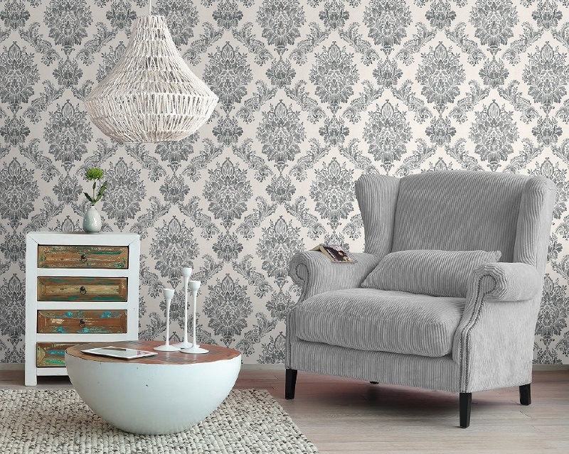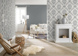 grijs wit barok behang rasch 204834
