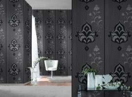 zwart grijs barok behang 773521