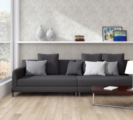 Het modern geïnterpreteerde en beschaafde patroon met 3D-uiterlijk nodigt, samen met het unibehang en een barok bloemenpatroon, uit tot mixen en matche