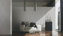 Het modern geïnterpreteerde en beschaafde patroon met 3D-uiterlijk nodigt, samen met het unibehang en een barok bloemenpatroon, uit tot mixen en matche