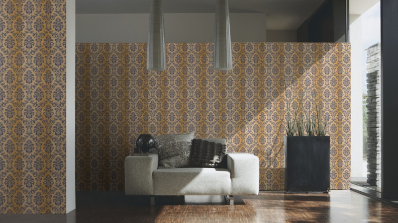 De dessins worden geschapen uit de rijkdom aan klassieke ornamenten met overvloedige bloesemranken, gestileerde edelstenen, lederlook in Chesterfield-stijl en gedurfde roofdiercartouches. Textielstructuren en een kundig spel met matglanzende effecten onderstrepen de gedetailleerde pracht.