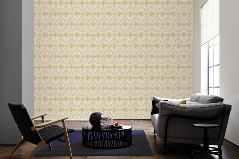 De dessins worden geschapen uit de rijkdom aan klassieke ornamenten met overvloedige bloesemranken, gestileerde edelstenen, lederlook in Chesterfield-stijl en gedurfde roofdiercartouches. Textielstructuren en een kundig spel met matglanzende effecten onderstrepen de gedetailleerde pracht.