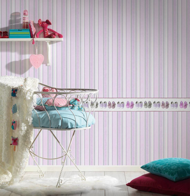 roze baby schoentjes behangrand 35864-1