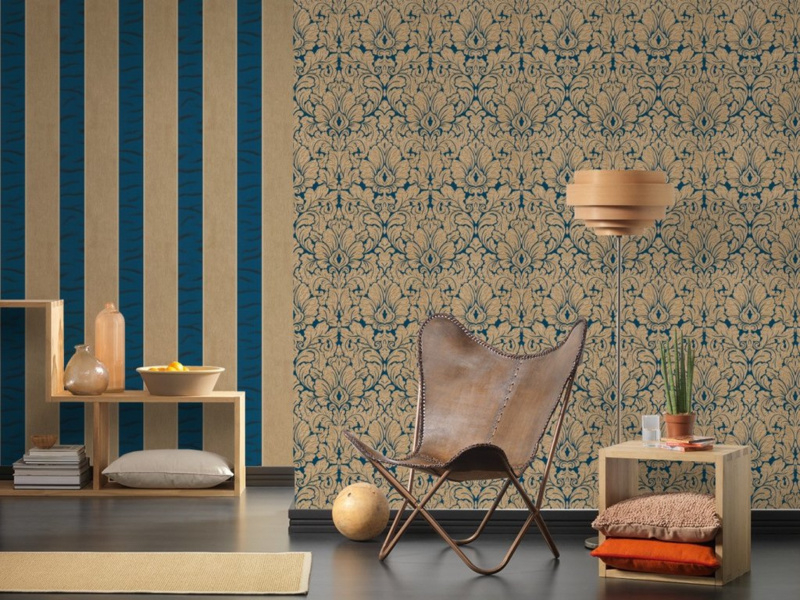 blauw strepen behang 33321-4
