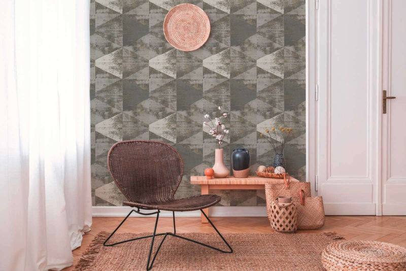 taupegrijs beige metalics behang Retro modern grafisch