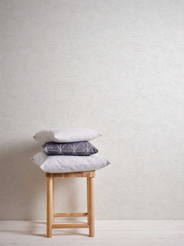 Wit behang met dikke relief vleugje creme erin