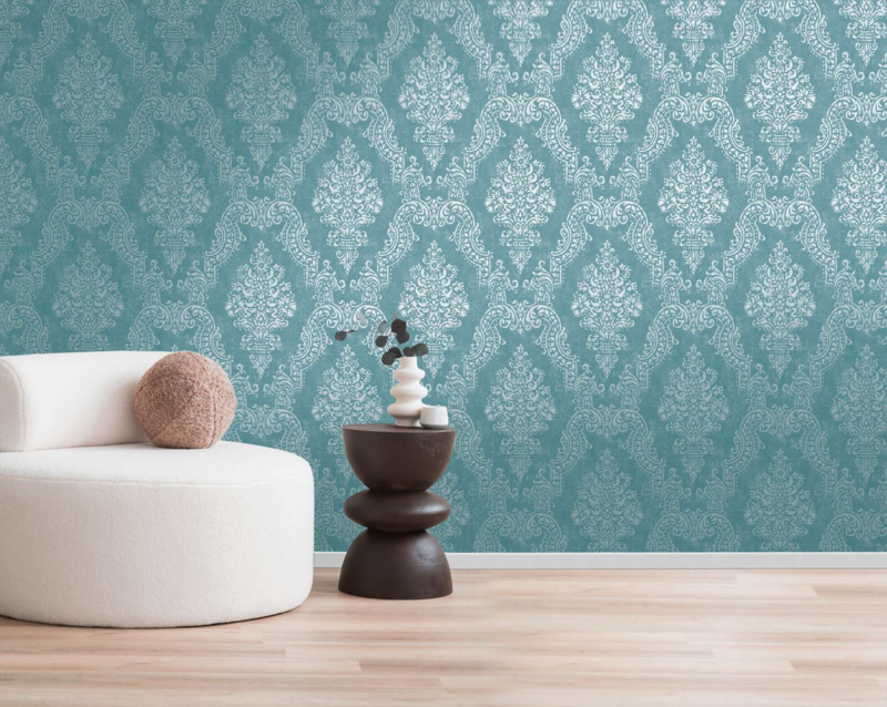 blauw/groen barok behang