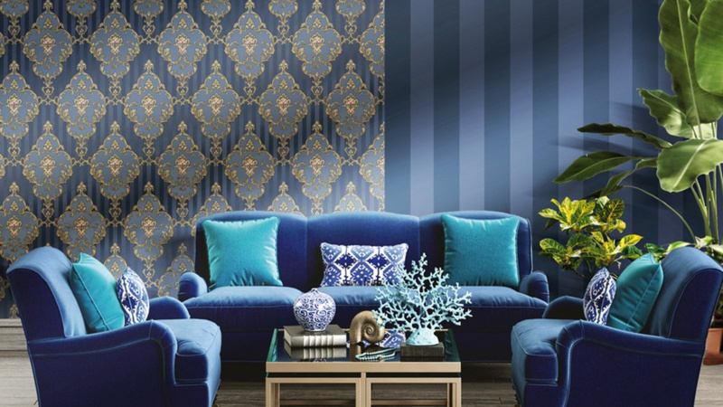 Blauw en Goud: Barok Behang voor een Koningachtige Sfeer 4607