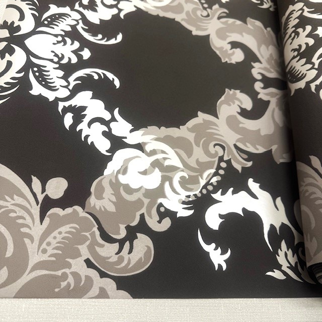 Het behang heeft een weelderig barokontwerp, met gedetailleerde ornamenten die de luxe en grandeur van deze stijl uitdragen. De combinatie van bruin en wit biedt een harmonieuze balans tussen klassieke pracht en moderne eenvoud, geschikt voor diverse interieurstijlen.Materiaal: